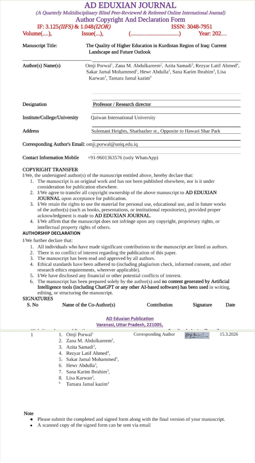 12. Rauf, H. L., Namiq, Z., & Shareef, S. S. (2024). Practitioners’ Corner Higher education in Iraqi Kurdistan: Rethinking psychological principles in student-centred learning approach. The Independent Journal of Teaching and Learning, 19(2), 125-138.
