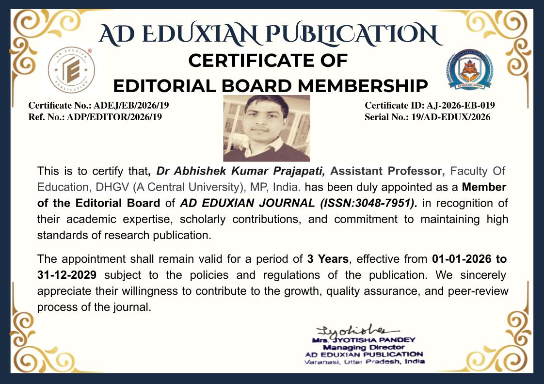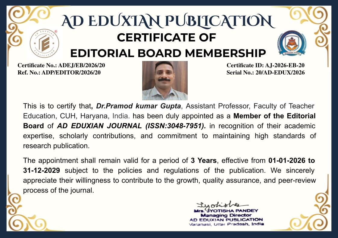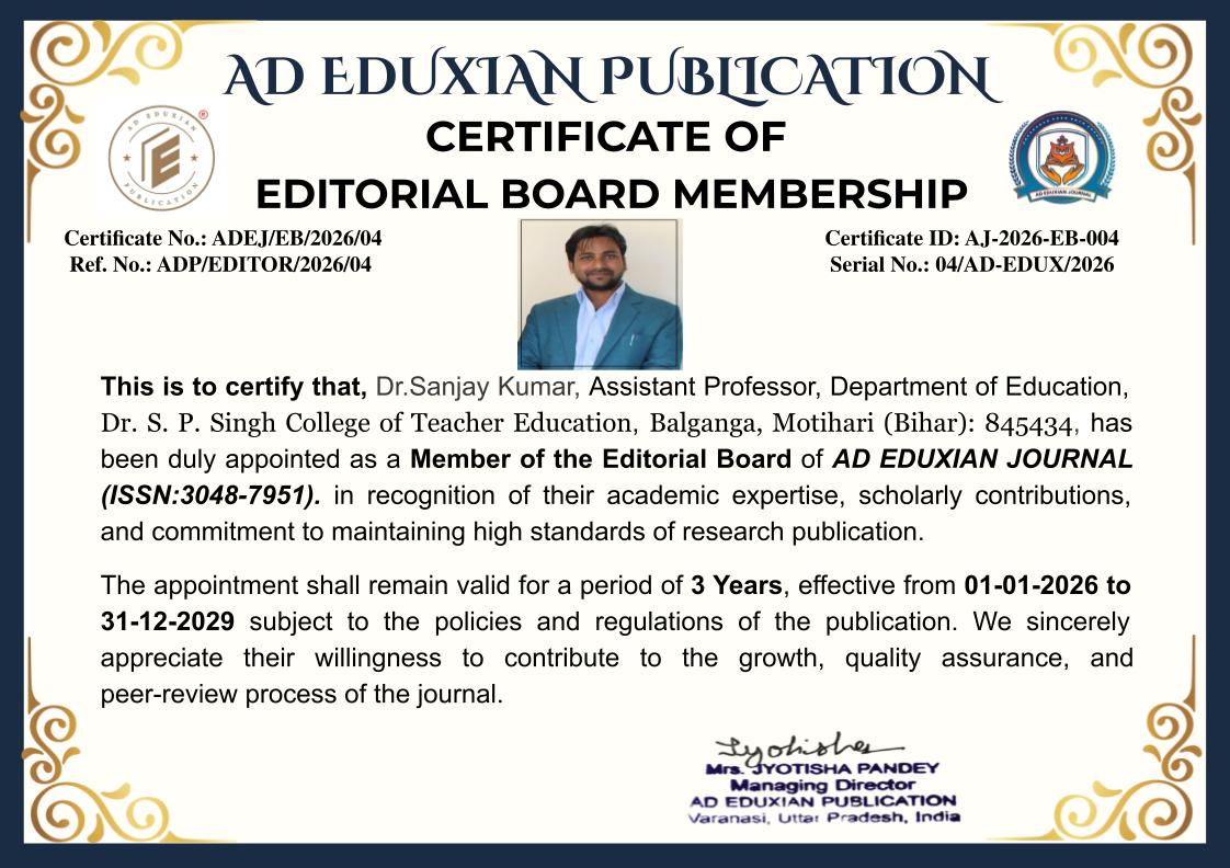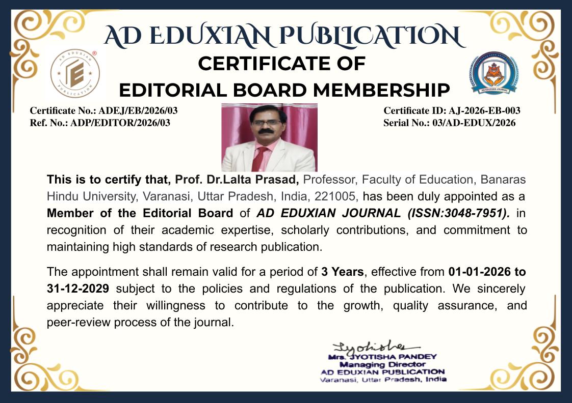 3. Editorial Independence: All editorial decisions shall remain independent, fair, and aligned with the mission and scope of AD EDUXIAN JOURNAL