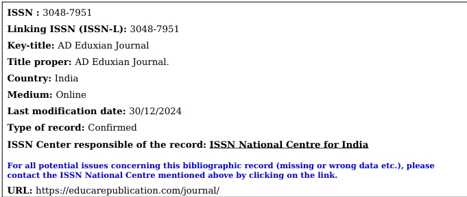 The AD EDUXIAN Journal is a quarterly multidisciplinary blind peer-reviewed and refereed open-access international journal dedicated to promoting high-quality research across diverse academic disciplines. The journal publishes research articles, review articles, case studies, and short communications from broad areas including Education, Social Sciences, Management, Science & Technology, Medical Sciences, and Pharmaceutical Sciences & Indian knowledge systems. With a commitment to rigorous peer review and academic excellence, AD EDUXIAN Journal provides a platform for scholars, researchers, and professionals to share innovative findings, critical insights, and impactful contributions to the global knowledge community.